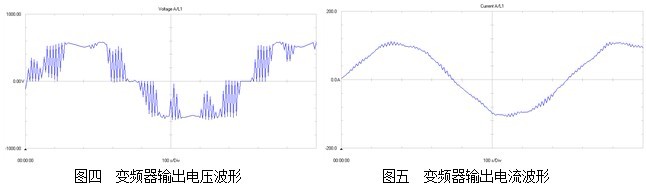 諧波注入電網,將會使電感設備如電機、變壓器、導線等產生額外的溫升及絕緣的破壞,導致電氣設備壽命縮短,損耗增大,同時造成電容器的故障和損害,使系統發生諧振的可能性增大,諧波也可能引起繼電保護和自動裝置誤動、儀表指示和電能計量不準及干擾通訊系統等一系列問題。 2、變頻器輸出側的波形 在逆變輸出回路中,輸出電壓和電流均有諧波。對于PWM控制的變頻器,只要是電壓型變頻器,不管是何種PWM控制,其輸出電壓波形為矩形波,其中諧波頻率的高低是與變頻器調制頻率有關。電流波形是帶毛刺的近似正弦波,如圖所示。可見,變頻器的輸出波形畸變將會對電動機造成極大的危害。