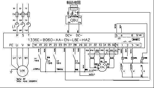 四、控制應用要點 (1) 重載起動和停車 中間包為重型設備, 其負載變化范圍是相當大,其自重近30t ,再加上鋼水可達80t 。1336E系列變頻器是目前最先進變頻控制設備,對電機參數(shù)具有自整定優(yōu)化運行功能,制動電阻能充分發(fā)揮電動機潛能,達到最優(yōu)控制。 升降控制,制動電阻起動尤為重要,變頻器運行后,提升力矩不足話一旦制動單元打開就會出現(xiàn)溜鉤或鋼包滑落無法控制而快速下降,造成設備損壞事故。停車時,速度和制動單元配合不好,也會出現(xiàn)過早制動造成制動單元壽命縮短。解決方案:見原理圖2