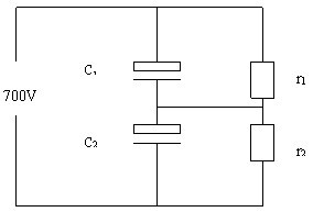 2.1 計算等效直流電阻值: C1 R1=400V/0.4mA=1MΩ C2 R2=400V/0.6mA=0.67MΩ 2.2計算出每個電容器的電壓: