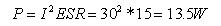 如果400V4700uF電容工作時通過紋波電流為30A,它的ESR典型值為15mΩ,每個電容器的耗散功率為
