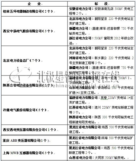 國家電網2013年電抗器中標企業公示