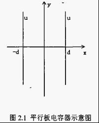 下面以一維有限元法為例介紹有限元法的基本原理。如圖2.1所示為一無限大平板電容器,該電容器的兩極板間充有P=F的自由電荷,并假設極板都接在電壓為“的電源上,極板距離為2d。很明顯,電容器的激勵和幾何形狀都對稱于Y軸,使電勢在對稱軸上沿x方向變化率為零,于是這種對稱結構可用齊次諾依曼邊界條件來表示。則這個平行板電容器靜電場的微分方程為