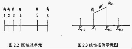 介于節點f和i+1之間單元上的勢函數礦。由節點i和i+1上的勢函數≯,和≯。及相應的形函數妒,和≯。所表達,如式2.25所示。形函數在微分方程求解的變分法和加權余數法中稱為嘗試函數,在有限元法中它主要體現了插值函數的形狀。 |