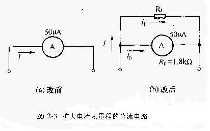 電流表的滿度電流為50uA.現(xiàn)需將它改成一個最大量程為500uA的電流表,此時只需要在電流表兩端并上一只制動電阻R1即可。根據圖2-3(b)并聯(lián)電路可知: I= I1 +I0 若I = 500uA,則I1 =I - I0 = 500-50 =450uA由于I0 * R0 =I1* R1(式中R0為電流表內阻) 求得R1= (I0* R0)/I1= 200Ω上述的分流電路計算結果表明,只要在50uA表頭上并聯(lián)一個200Ω的電阻,即可使表頭的量程由50uA擴大到500uA。