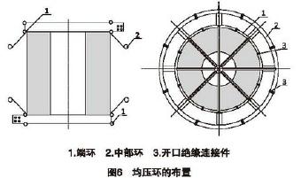 改善繞組初始分布的方法是繞組的尾部,必要時也可以在中部加均壓環,均壓環與星架電氣連接。威力防止出現閉合回路均壓環上具有開口,如圖6所示。均壓環的工作原理是與繞組的表面形成新的分布電容,在初始直角波波頭的作用下,產生流過均壓環與繞組表面分布電容的補償電流。當補償電流能夠與繞組對地分布電容電流相抵消時,繞組內部電壓分布必然均勻。有均壓環對繞組提供的補償電流與繞組對地的雜散電容電流很難完全相等,而且與均壓環的具體結構尺寸有關。為了使得電壓的初始分布更接近穩態分布,有時采用多個均壓環進行補償。