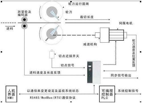 伺服系統(tǒng)在紙袋生產線上的應用 一、行業(yè)概述及工藝要求: 紙質包裝袋具有成本低、成型方便、多樣、印刷精美、綠色環(huán)保等特點,一直在水泥、糧食加工、服裝、鞋帽等行業(yè)有著廣泛的應用,隨著國家“限塑令”政策的出臺,紙袋在食品包裝行業(yè)取代塑料袋已成必然,這給紙袋提供了廣闊的市場空間,催生了大批的紙袋生產企業(yè)。在江浙的紙袋機生產企業(yè)也迎來了第二個春天。伺服驅動器得以廣泛應用。 紙袋的生產工藝決定了機械必須具有連續(xù)性、高速性及高精度,在先印刷后裁切等紙袋機上還要求具有自動追色標裁切功能。一般生產要求主送料速度為100米/分鐘,裁切誤差不超過1毫米。能夠自動追隨主送料速度按設定的裁切長度計算并精確裁切。這就給電氣控制提出了更高的要求。 伺服驅動器具有的運動控制器與伺服驅動器結合為一體;可控制無刷伺服或感應伺服;內含32位微處理器及125us動態(tài)高速計算回路;可接收400Kpps的高速測長脈沖信號;可追認印刷點自動修正裁切長度等特點完全滿足了生產工藝的要求。 二、控制理念及系統(tǒng)構成: 根據(jù)工藝要求我們設計采用了在主送料輪上加裝編碼器并反饋給伺服驅動器,用以實時監(jiān)測送料速度并計算;用人機界面和伺服直接通訊來做生產訂單的管理及實際工況的監(jiān)測;在距輪刀位置裝光電傳感器用以給伺服裁切完成信號;在裁切物料垂直位置裝檢測裝置用以檢測色標點并反饋至伺服驅動器。 基本系統(tǒng)構架如下圖: