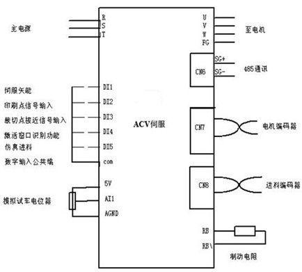 以上構架圖為構架,紙袋機大部采用單刀對膠輥裁切,輪刀多為鋸齒刀,特殊要求還有加熱刀。 三、系統(tǒng)接線及參數(shù)設置: