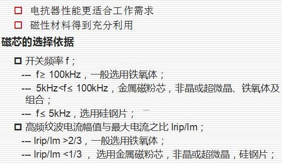 3、高頻開關電源用電抗器(高頻電抗器)鐵心的選擇 根據以上的條件,開關電源用高頻可飽和電抗器鐵心應具備以下特性飽和磁通密度和殘留磁通密度的比,即矩形比。 a、頑磁力小。 b、飽和磁通密度大。 c、溫度特性好。