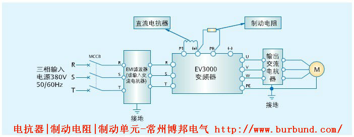 艾默生變頻器配件(電抗器、制動(dòng)電阻、制動(dòng)單元)接線圖 常州博邦電氣專(zhuān)業(yè)生產(chǎn)艾默生變頻器用電抗器、制動(dòng)電阻、制動(dòng)單元。這些都屬于變頻器周邊配件產(chǎn)品,它們的線路如何連接是個(gè)經(jīng)常困擾工程師的難題,現(xiàn)在就對(duì)接線圖略作說(shuō)明。