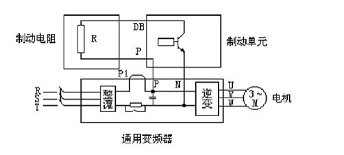圖二 能耗制動和制動單元、制動電阻的連接方式